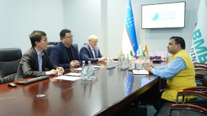 Жорий йилнинг 16 ноябрь куни BMB HOLDING Бош офисида мамлакатимизнинг Ҳиндистондаги элчихонаси кўмагида Ҳолдинг Кузатув Кенгаши раиси Бекзод Маматқулов ҳамда Groceries Impex компанияси асосчиси Випин Аггарвал ўртасида учрашув бўлиб ўтди.